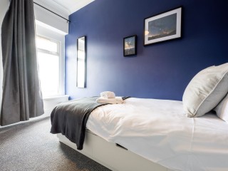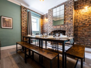 The house has a large comfortable living room with plenty of space. The dining room is beautifully presented with an exposed brick wall and industrial-themed furniture, giving you an atmospheric place to eat and drink with your fellow guests. The kitchen is well equipped with all the crockery, glassware and cookware you need to cook up a storm, with everything you’d come to expect from an; induction hob, large fridge-freezer, two kettles, toaster, microwave, oven, dishwasher and washing machine. A downstairs bathroom offers additional convenience for your group.