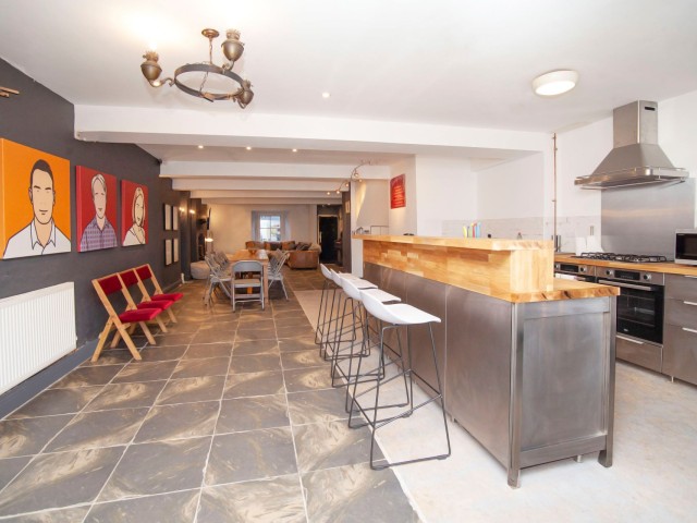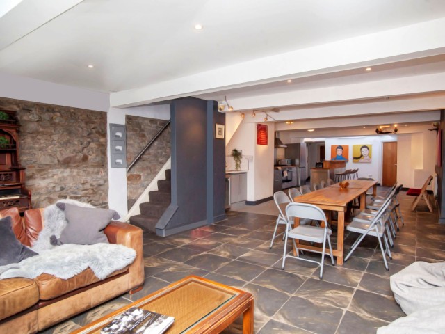 🏠The kitchen, diner and sitting room in the basement is HUGE. The dining table can accommodate 16 diners. There’s also a separate breakfast station that incorporates an extra fridge in case the large fridge can’t accommodate the weekend’s beer or wine! At one end of the basement is a large sitting area equipped with sofas, bean bags, and a 60inch large screen TV. Between the sitting area and the dining table, there's plenty of room to play board game, listen to music, watch Freeview TV or just relax and unwind with a cold beer or glass of wine.đźŹ