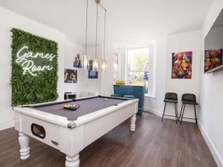 The property boasts a fantastic games room complete with a bar, pool table, large TV with karaoke, and a wine fridge for the ultimate fun experience.
