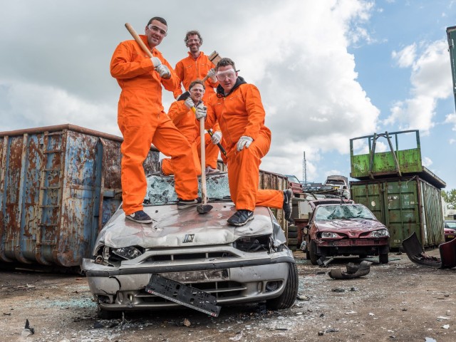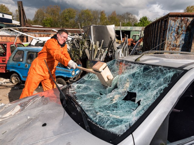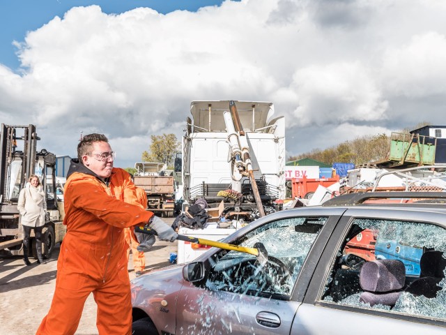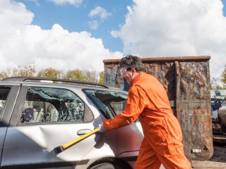 Sledgehammers, baseball bats, golf clubs, we have them all. We take your safety serious and protective clothes are provided.