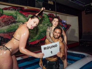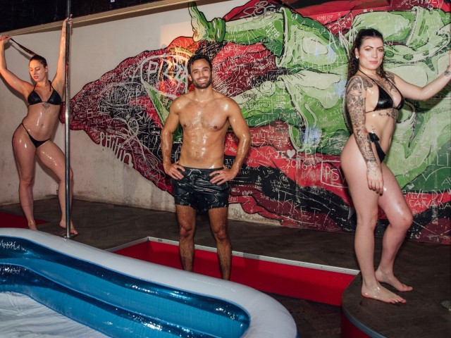 🌊 A drink in your hand, two sexy ladies in bikinis, a swimming pool full of oil and the stag in his undies! 🌊