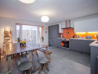 There is a kitchen/diner on the ground floor. The tables, benches and stools can comfortably accommodate 12 diners (or drinkers as the case may be). The kitchen/diner opens onto a small, but perfectly formed private rear courtyard that contains a long outdoor table and a couple of benches on which to hang out with a beer (or glass of wine as you prefer).