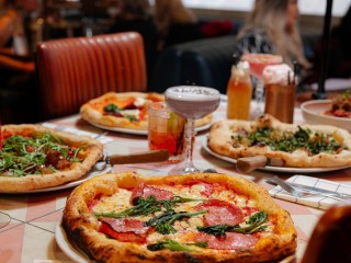 - Main Pizza ( Margherita (v), Pepperoni, Heat & Meat, Meatballs & Olives, Carbonara, Goat's Cheese & Pesto (v), Pesto Chicken )