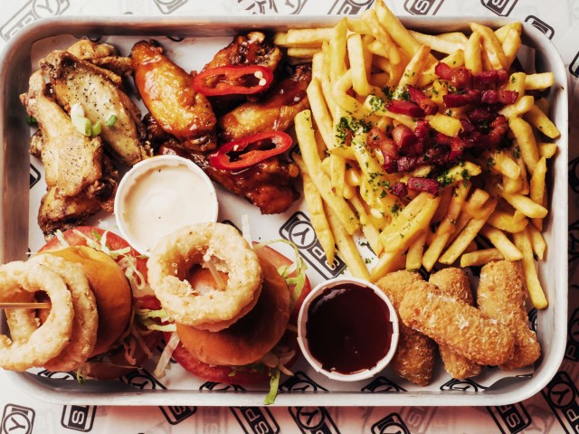 - Picky Platter for your group to share - 2 Cheeseburger Sliders, Salt & Pepper Wings, BBQ Wings, Bacon & Cheese Loaded Fries, Onion Rings, Mac n Cheese Bites, Selection of Dips (Sample Menu)